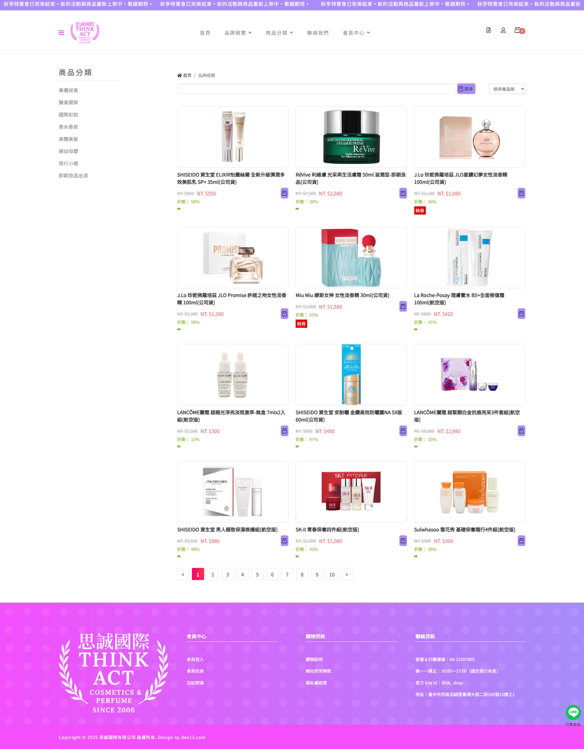 設立「品牌精選殿堂」區塊,陳列全球知名美妝保養品牌,強化網站的商品力與專業性。