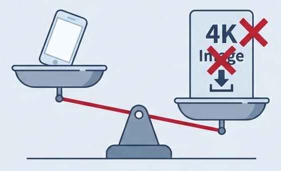 常見情況如:桌機用的大尺寸圖片直接套用在手機、未壓縮圖片或未設定適當尺寸,