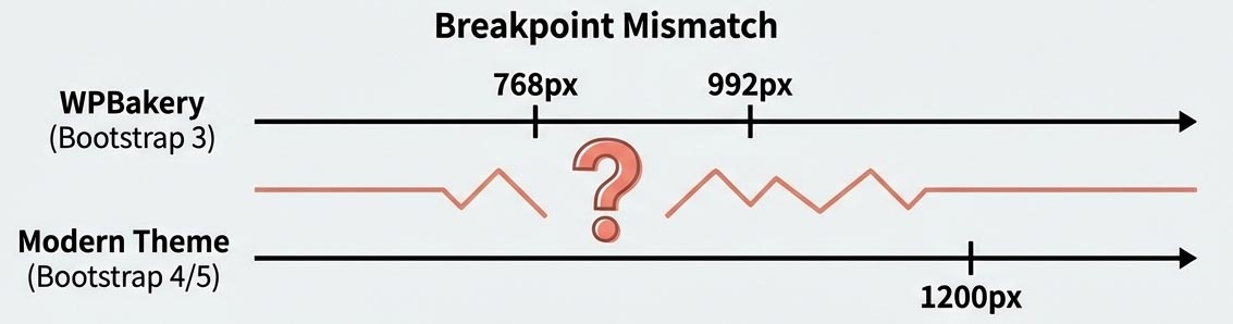 通常原因是主題的 Bootstrap 斷點與 WPBakery 預設不同,