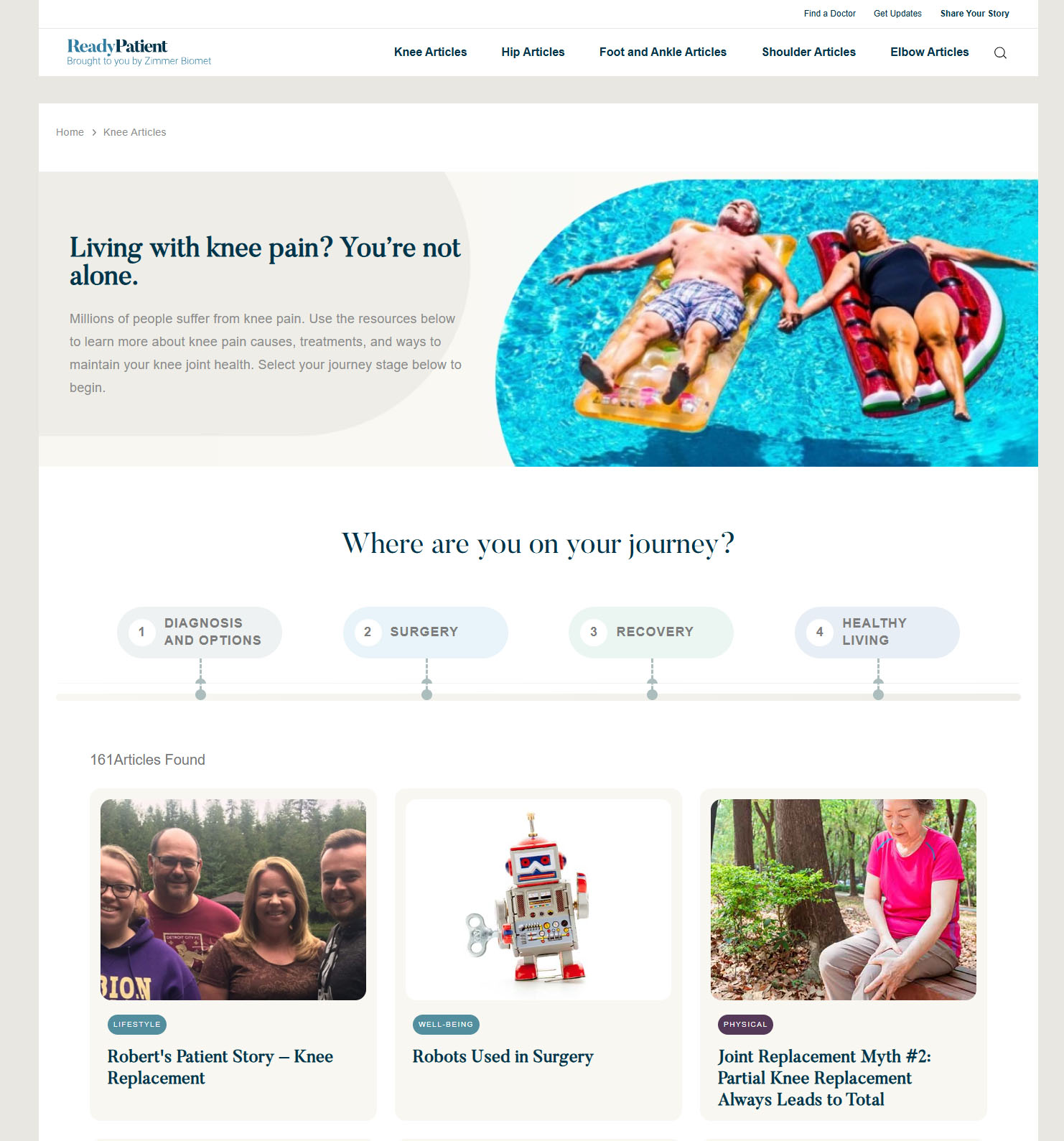 網站以「患者教育」為核心,提供關節健康與治療相關資訊,幫助患者理解疾病與治療方式。