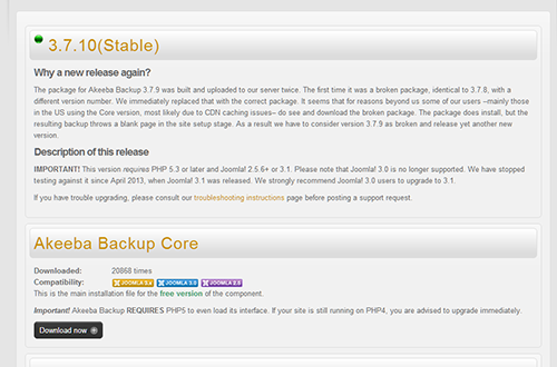 1.) 至 Akeeba Backup 官方網站下載元件:https://www.akeebabackup.com/index.php