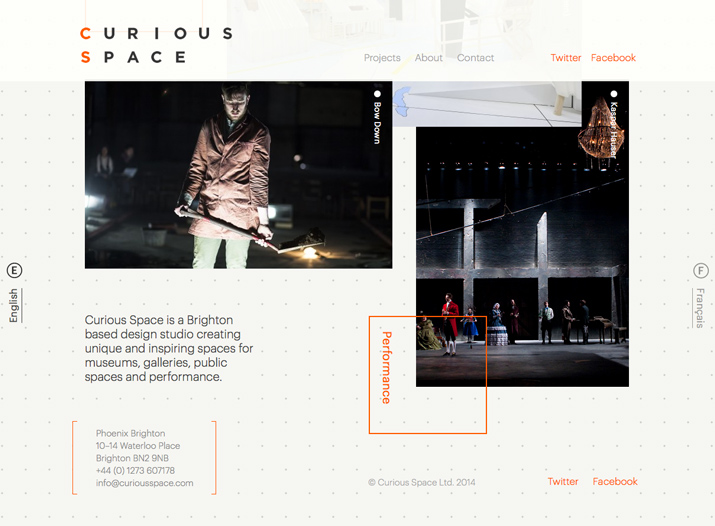 Curious Space 使用了不太傳統的網頁設計頁腳風格,你可以從風格尺寸的使用中感受到它的存在。頁腳的文字稍小一些,而且比頁面中其他文字更細更輕,當然也沒有小到看不見。