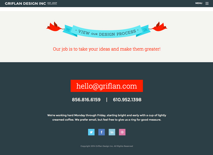 Griflan Design Inc. 在頁腳中按照他們希望的順序告訴用戶要做什麼。