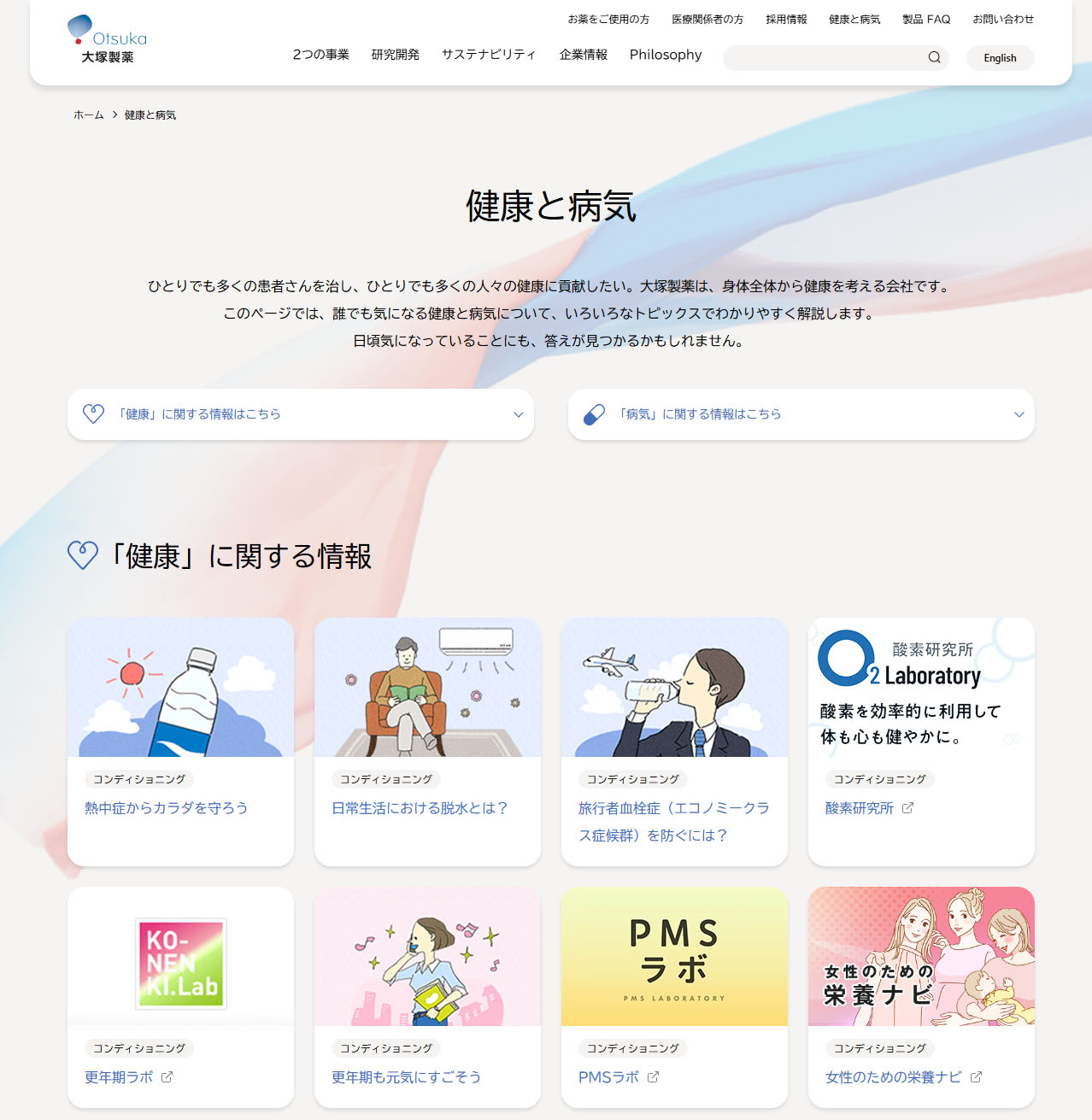 大塚製藥旗下網站提供大量健康知識與疾病資訊。